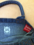 タボンコロネの控えめなワンポイントプリント デニムの風合いが可愛らしい コロンとした雰囲気の手軽なミニトート 内側に直販オンリーを表すプリント入り